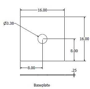 Cortar madera 16 "x 16". Opcional – orificio de 3 3/8" de diámetro en el centro del tablero.
