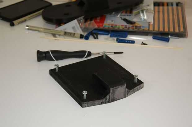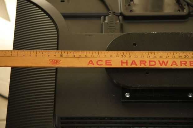 Usé a un viejo monitor Hanns-G,-OK con el propósito de este ejercicio. De lo contrario, el soporte de monitor ajuste como un guante, las dos piezas encajan, con la separación de 1mm de diseño entre el gancho y el lazo. Midió la distancia entre el borde inferior de la pared en el borde inferior del monitor, 17 cm. Esto + la distancia deseada hasta el escritorio = la altura de la placa de pared.
