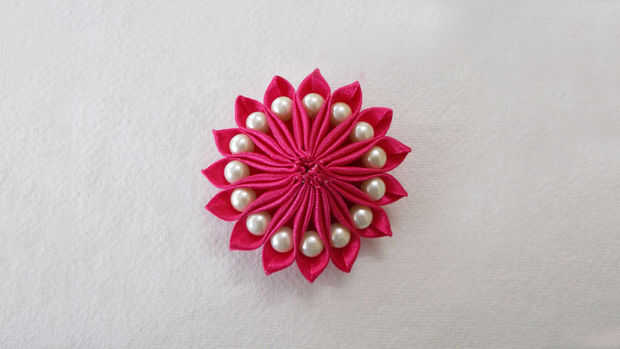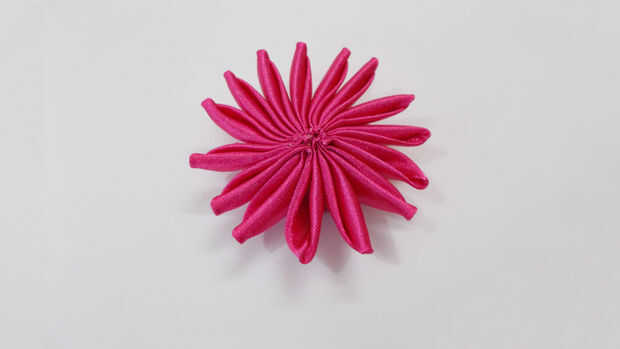 Añadir los pétalos de cinta satén hasta completar la flor.