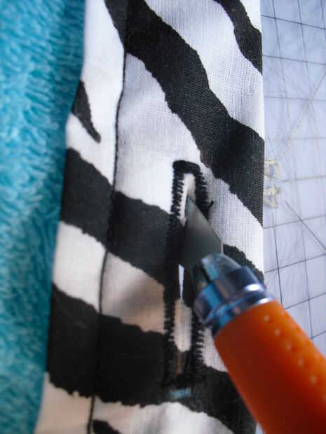 Cortar una línea recta entre los puntos de su ojal utilizando un cuchillo del exacto o destripador de la costura.