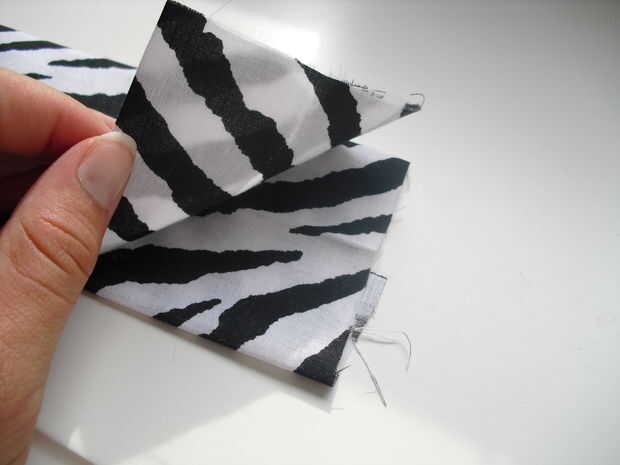 Haz dos tiras, deshacer el último doblez para ambos y colocarlos en la parte superior entre si con la tapa restante hacia fuera...