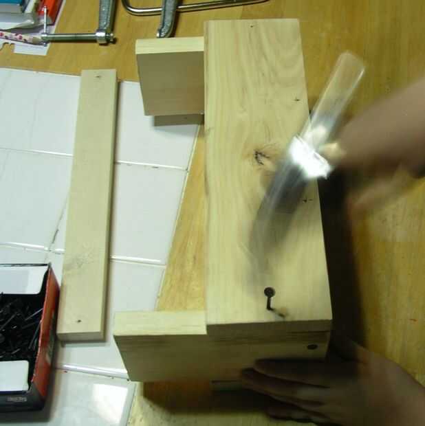 Pegamento y clavo el otro lado largo. Se trata de una repetición de la última etapa.
