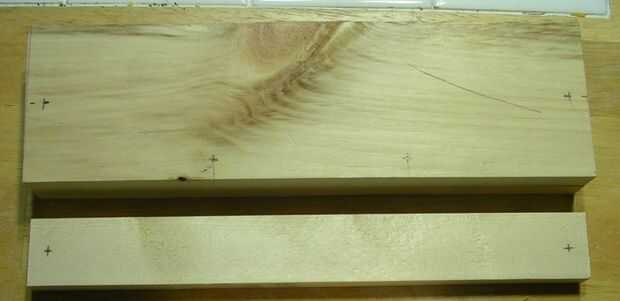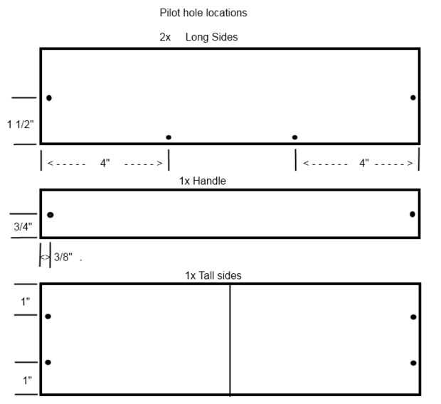 Todos los orificios son de 3/8" en el borde de los tableros. Puesto que el grueso de las tablas ser clavado es 3/4", colocar los orificios piloto de 3/8" del borde mantendrá las uñas en el centro de los tableros. Si tienes un calibre o calibrador a bloquear a 3/8". Coloque contra el borde de la tabla, luego marque con un lápiz en su extremo. Esto le dará colocación consistentes de los agujeros.
