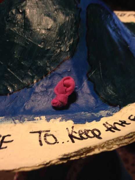 Tomamos dos tiras de 12 pulgadas de una pulgada amplia trozos de camiseta y pasar un extremo por uno de los otros dos orificios que perforados y anudadas a la parte superior para que no se tire a través.