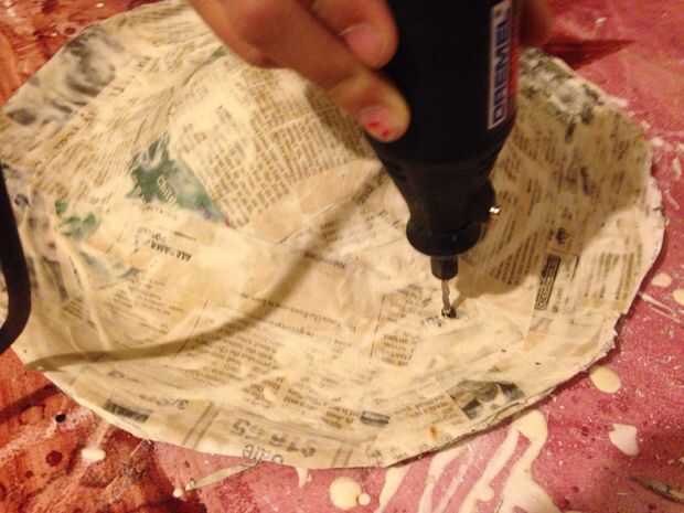 Hemos recortado los bordes del borde con unas tijeras de par (ver pasos previos en relación con una lección aprendida aquí) y utilizar una dremel para tres agujeros en el sombrero para la instrucción más adelante.