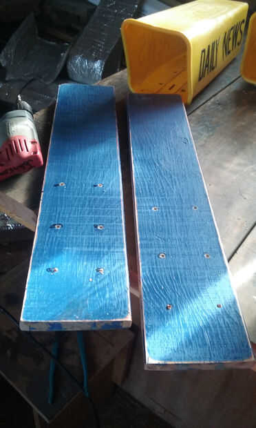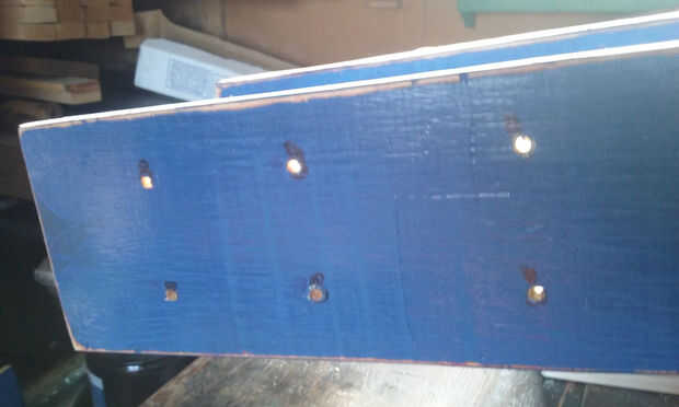 Proceder a taladrar los orificios (usé 1/4" bits creo) y los pernos de 2 pulgadas. (Necesario para poner las arandelas en los pernos para evitar tirar a través.)