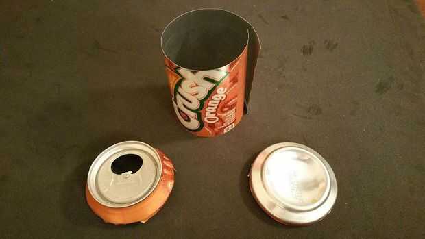 Tomar la lata limpia y usando su cuchillo pinchar y cortar a lo largo de la parte superior de la can sobre a medio camino a través. Con sus tijeras, corte longitudinalmente a lo largo de la lata en el centro área de nutricionales hasta el fondo de la lata. Corte a lo largo de la parte inferior de la lata para quitar esta porción también. Volver atrás y cortar el resto de la parte superior. Asegúrese de que usted recicla todos tus residuos. Recortar todas las asperezas a lo largo de la parte superior e inferior de tu hoja de lata con unas tijeras teniendo tanto material como sea posible.
