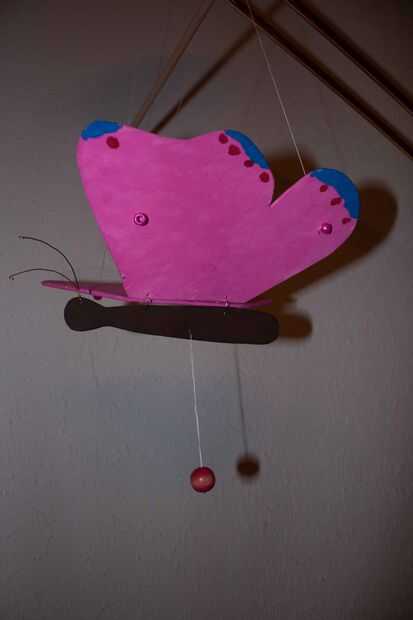 Ahora puede tirar de la cadena y dejar ir. La mariposa se moverá hacia arriba y hacia abajo, mirando como si fuera volando.