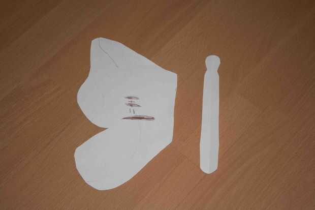 Primero tuve a mi hija hacer una plantilla. Ella utiliza la idea de la revista, pero como la revista era solo letra tamaño, le dije para hacer la plantilla mucho más grande y usar el plan en la revista como una plantilla para. Ella copió el plan para las alas y el cuerpo a un pedazo de papel (en realidad, cartón habría funcionado mejor aquí para localizar la forma de las alas y el cuerpo más adelante) y corte la plantilla con sus tijeras.