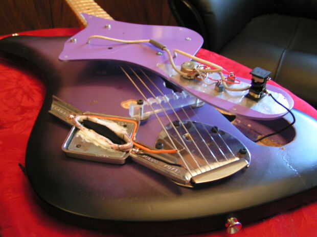 este es el protector de pick de mi último proyecto, la guitarra de patín. Pronto se va en la guitarra de la plantilla de tela.Para este proyecto, estoy convirtiendo una guitarra dos humbucker volumen y un tono en uno que tiene un volumen para cada pa