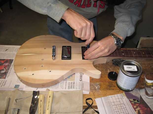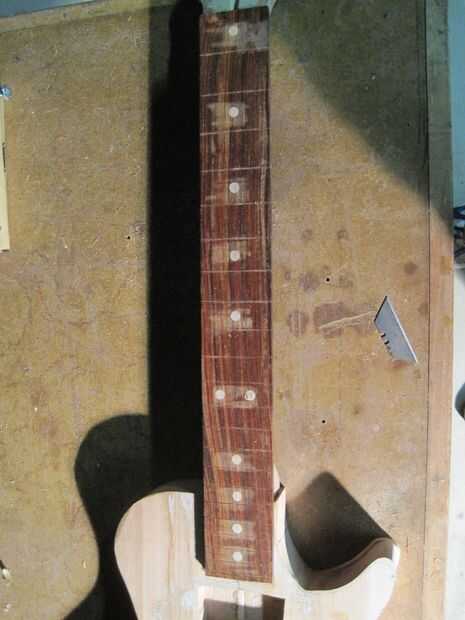 También es un buen momento para un paquete de cuerdas y que se ejecutará desde el puente sobre las piezas polares y el cuello. También echa un vistazo a la acción sobre el tablero del traste y asegúrese de que el cuello esté en el ángulo correcto.