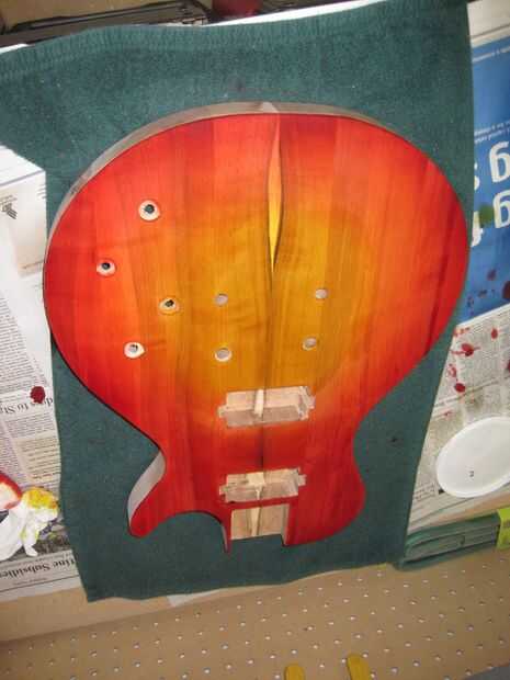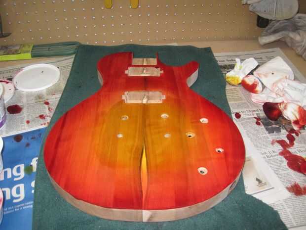 La ráfaga de fuego era realmente mucho más fácil de lo que pensé. Lo hice completamente a mano, sin pistola o cualquier cosa. Si usted está planeando en hacer algo como esto sugeriría ir a youtube y buscar "mano frotó guitarra sunburst" allí son un montón de videos que demostrarán el proceso mucho mejor de lo que puedo describir.