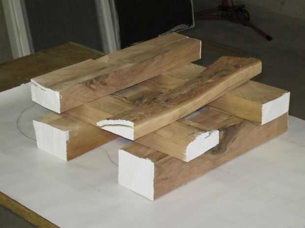 Por desgracia la madera comenzó a terminar muy mal check y tuve que cortarlo en trozos más pequeños. Hay pintura blanca en los extremos para evitar que al final comprobando así puesto que la humedad se agote los extremos más rápido que las caras. Después se hizo secar aserrado para arriba en la Sierra de mesa de mi papá.