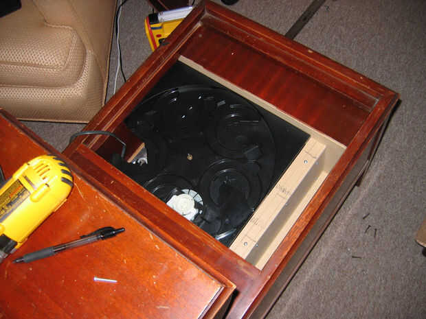 Vida hubiera sido más fácil utilizar un solo panel para cubrir la brecha en el paso anterior, pero opté por hacer un pequeño bolsillo de almacenamiento de CD de recambio.