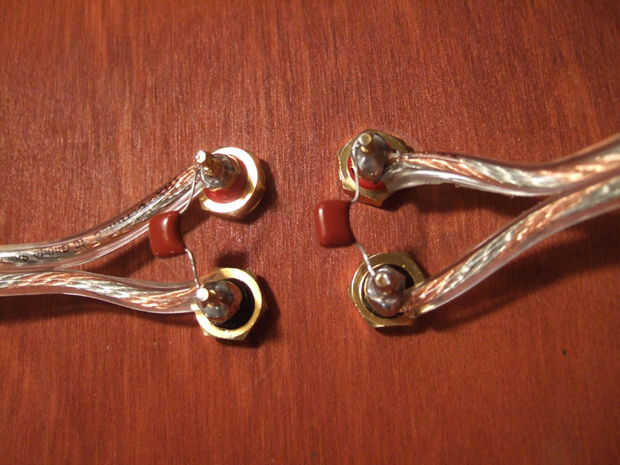 Una vez que todo está atornillado en su lugar, se sueldan los condensadores de filtrado que originalmente fueron soldados a través de las salidas de la T-amp a través de las salidas de poste de Unión.