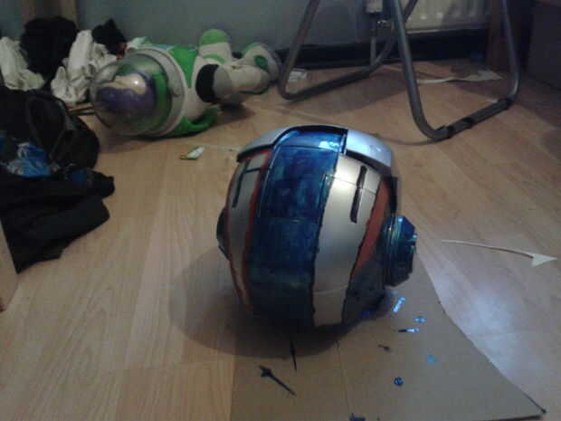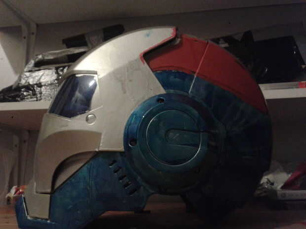 Siga las líneas de la parte superior de la placa frontal hacia abajo, hacia las dos últimas piezas deslizantes del casco pero guardamos plata
