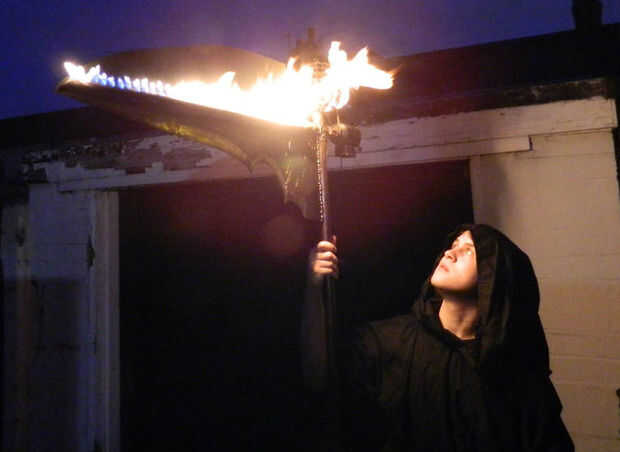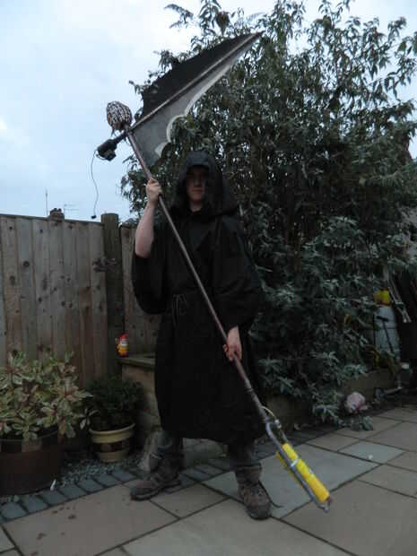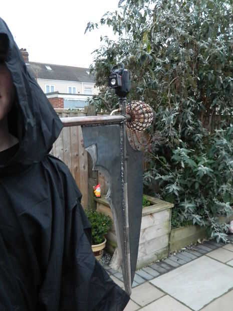 En este proyecto que decidí replicar este efecto excepto, en el espíritu de Halloween, montado en una guadaña de 8 pies. Debería ir sin decir que este proyecto es bastante peligroso si no juegas seguro, así que Téngalo en cuenta si decides tener un ir.