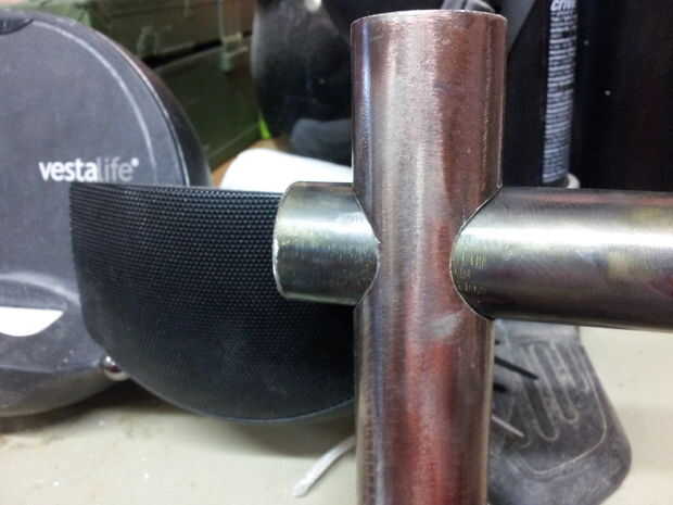 La sierra no fue correctamente adjuntas al taladro como más tarde me enteré y lamentablemente este hecho vibrar mucho y salió del agujero mucho más grande que debe tener. Para espesar la sección del tubo de llama, usé un tubo ligeramente más grande como un collar. No sólo esto resolvió mi problema, sino que agrega fuerza a la estructura.