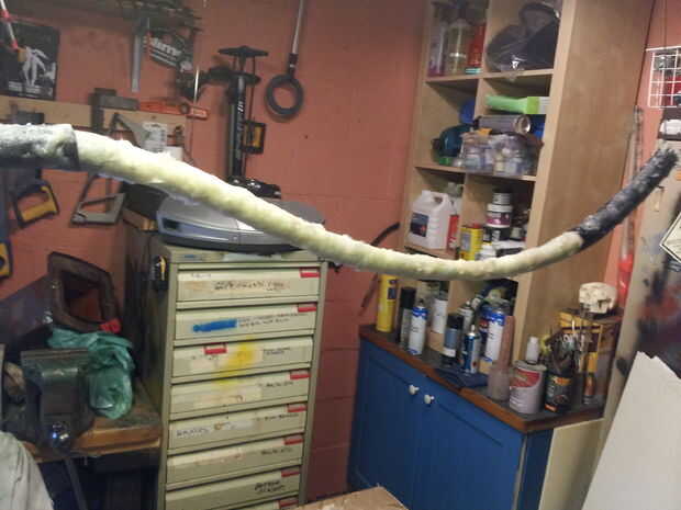 El mango no era un éxito total, de hecho llevó algunos intentos. El primer intento fue algún calor-curvado tubo de PVC reforzado con fibra de vidrio, pero éste resultó demasiado débil para el cabezal de acero e inevitablemente quebró por la mitad. La única solución real era hacer el mango de tubo de acero.