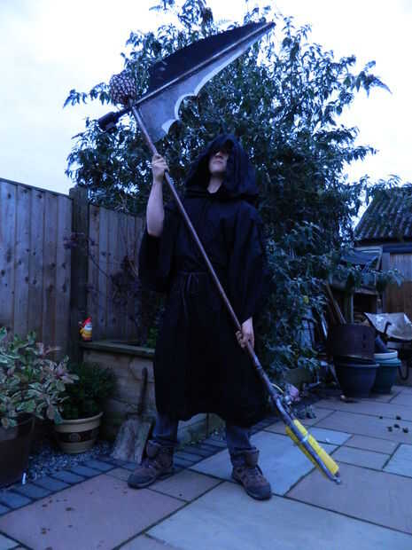 Tubo de un doble de Rubén no fue suficiente para mí, así que tenía que agregar una carga extra de fuego. Encontré una vieja cesta de acero, con lo que parecía ser los granos de cristal en él. Rápidamente descubrí, no se trataba de cristal, y ahora tengo varios grados de quemaduras permanente Testamento a este hecho. En cualquier caso, montara la cesta sobre el uso de un pedazo de taco que encajan muy bien en la parte superior de la guadaña y tuvo que ser martillado. Entonces atornillan la cesta en la espiga.