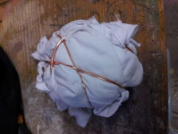 He utilizado un algodón como mecha para la llama de la cesta, pero la mejor opción sería alguna mecha de kevlar como lo que se podrían obtener para el equipo de circo. Simplemente jodido el algodón en una bola apretada y llevó a cabo junto con un alambre de cobre, desde que supe que esto no podía quemar o derretir. Esto había empapado en parafina y lo puso dentro de la canasta.