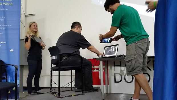 Eugenio escribió un driver de dispositivo comunicarse inalámbricamente con Edison de Intel y lo juego Ingrid es una palanca de mando. Dijo que fue divertido trabajar con la nueva plataforma de Intel!
