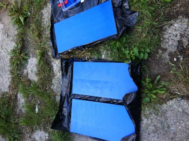 Tenía que trabajar en mi patio trasero, usé bolsas de basura negras como paños. Funciona bastante bien, siempre y cuando no es demasiado ventoso, y hace limpieza mucho más fácil porque ya tienes bolsos de mano.