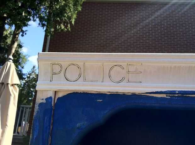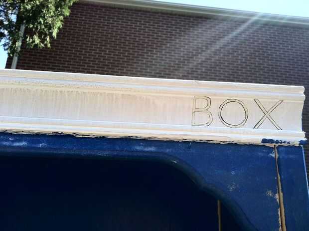 Me había utilizado mi cinta y pergamino letras, alineados a lo largo de la moldura en la parte superior luego rocía el área negro. Otra vez esto no es el mejor método, aunque sospecho que funcionaría mejor con pintura de aerosol de mejor calidad. No usar pintura en aerosol en todo para este proyecto si lo estuviera haciendo otra vez, pero mi experiencia con la materia es mínimo. Probablemente conseguiría un pequeño probador puede pintura moldura negra, pintura la zona utilizar Letras de vinilo, o con cuidado pintura las letras en la parte superior de la mano.