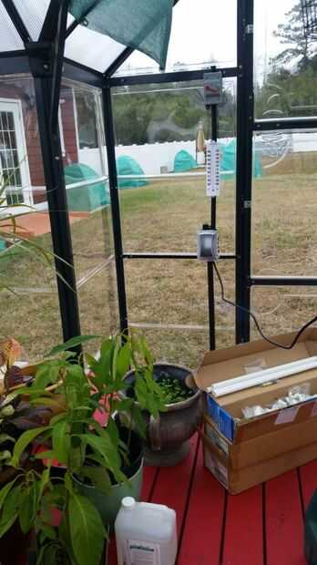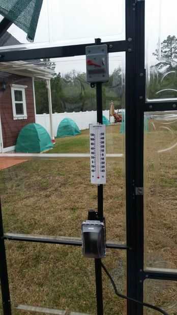 Última actualización fue instalar toma de corriente y un interruptor para las luces más tarde. También compré el sistema de la cortina con el dinero extra que guardado y colgado un panel. La eléctrica es todo exterior pipa eléctrica del PVC, cable de 2/12 tierra gris, cajas plásticas eléctricas. Salida es GFCI protegido por si acaso. Termómetro cuesta $2. Pinté el negro eléctrico por lo que se mezcla en la estructura del invernadero. Estoy aún buscando un peso ligero pequeño, zona húmeda, solo bulbo, lámpara fluorescente para poner en el invernadero para por la noche. Un calentador no es necesario en este punto como que se puso bajo cero y era 60 grados en el invernadero con los respiraderos cerrados y cierre la puerta.