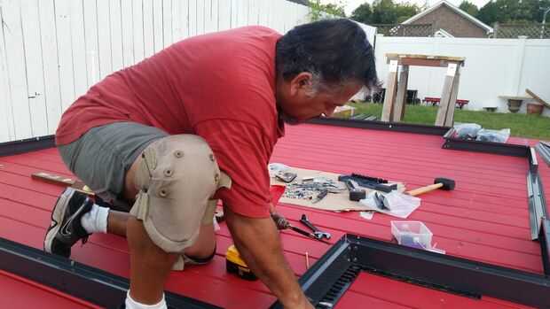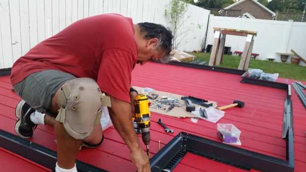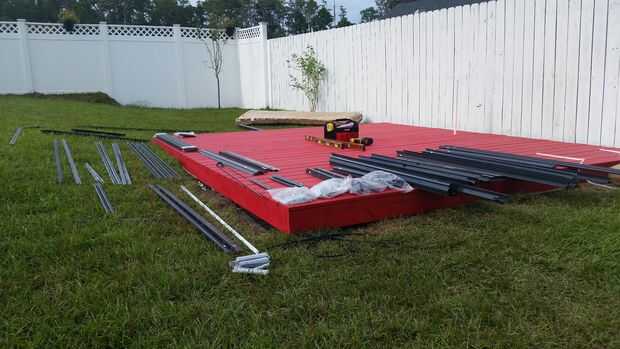 El invernadero llegó en dos cajas. I caja tenía la estructura de metal y hardware y la otra caja tenía claro los paneles de pared y paneles de la azotea. La esposa y yo fuimos de inventario y colocación como elementos en el suelo. De esta manera Cuando miré en el diagrama de la imagen podría emparejar números y recoger artículos fácilmente. Marqué el centro de la parte delantera de la cubierta y luego dibujé una línea de tiza en los lados de la cubierta de los bordes exteriores de la estructura de piso de metal de la marca. Al hacer esto tuve un espacio de un pie alrededor de la estructura metálica. Una vez que esto se logró que encontré mi centro y puso a la puerta trillar placa y asegurado hacia abajo. A partir de ahí trabajé a mi izquierda asegurando el marco del metal, con la Plaza de carpinteros para las piezas de ángulo. Una vez que la izquierda estaba segura hizo lo mismo para la derecha asegurando que cada cosa estaba en línea con las marcas de tiza. Luego puse la placa inferior izquierda y luego la placa de fondo de pared de derecha. Luego fue la placa trasera inferior. Comprobé de escuadra en el último momento antes de continuar con las paredes. A pesar de que las instrucciones no llamó para un montón de tornillos bajando en la cubierta de piso, asegurarme que he añadido extras tornillos cada pie para que el invernadero fue asegurado correctamente a la cubierta.
