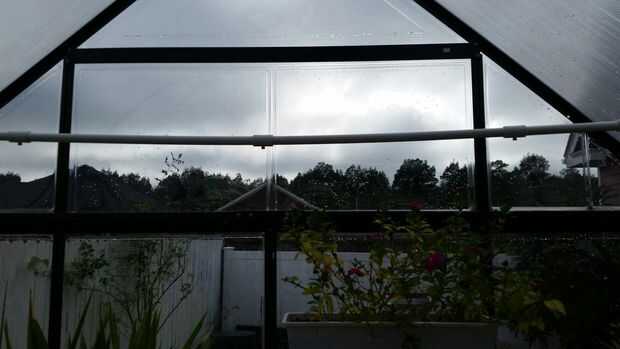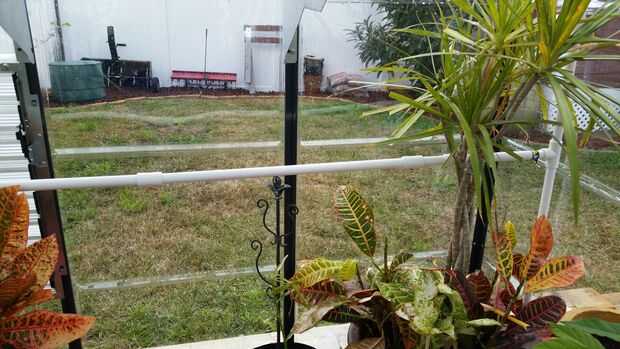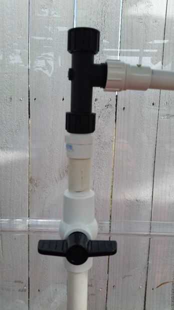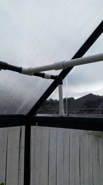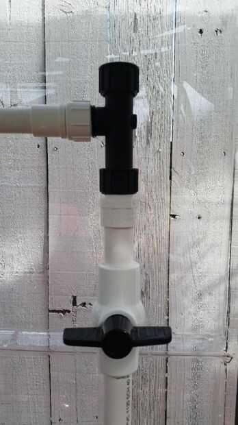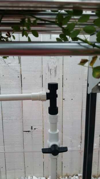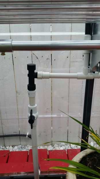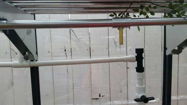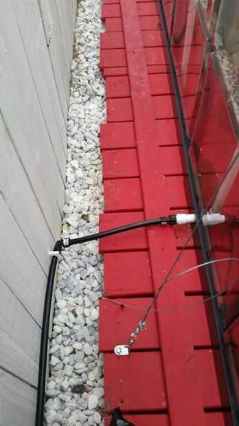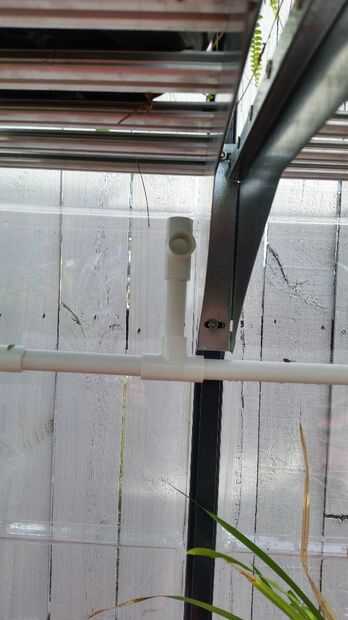 La próxima actualización es el sistema de niebla dentro del invernadero. Compramos el sistema de niebla de Ártico Cove para utilizar como un sistema de riego en el invernadero. No queremos mucha agua se derramó sobre las plantas que se podrían obtener en un sistema de riego regular. El kit de niebla viene con tubos de 1/2 pulgadas PVC, cabezas 6 niebla, codos, uniones, soportes, PVC pegamento, filtro y adaptador de manguera. Usé un total de cuatro kits principalmente para las cabezas de niebla como que es más barato comprar el kit que sólo los jefes solos. También compré dos pie 10 piezas de 1/2 pulgadas PVC tubería para los funcionamientos largos, que tuve que hacer en las esquinas. Había utilizado dos de los soportes de montaje para el exterior del invernadero y una lata de cemento puesto que ya tenía una lata en mano. Primero saqué lo que quería en el papel y luego el sistema viene del sistema de riego existente. Yo tenía la línea de 3/4 de pulgada PVC viene de los aspersores de césped que era buena para el tiempo de verano pero luego necesito para el invierno. He utilizado las piezas del kit Sr. Sprinkler había a la izquierda del último proyecto de riego de años y utiliza como mi fuente de agua secundarios de efecto invernadero para todo el sistema de temporada. Puse a la izquierda para toda la temporada y el lado derecho para el verano. Utilicé dos filtros de agua que viene en los kits, uno para cada lado y también cerrar las válvulas una a cada lado que compré de Lowe. Ambos sistemas funcionan en un tubo de solo 1/2 pulgadas PVC que provee el sistema entero. Toda la temporada fue correr hacia la parte posterior del invernadero y enganchado en el sistema de Sprinkler Sr. como se muestra en la imagen y también el final de la presentación. Todas las tuberías de PVC para el sistema de niebla todo primero fue cortar y poner en su lugar sin cementación. Esto asegurar un buen ajuste y si los ajustes tuvieron que ser hechas pude hacerlo.