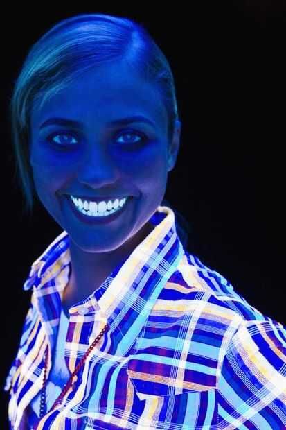los dientes de los pueblos – generalmente resplandor blanco bajo luz negra