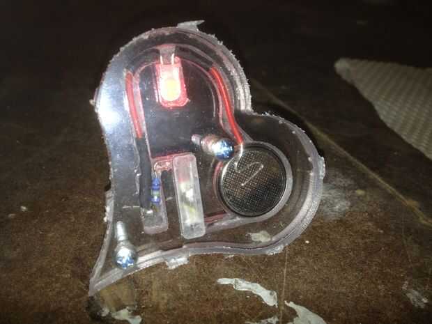 Para hacer el circuito caber la forma perfectamente soldar una pieza en el momento a partir del interruptor de inclinación. Sencillamente las piezas se van a soldar entre sí en el corazón y utiliza un par de pequeñas pinzas para doblar los cables encajan perfectamente. Terminó mirando como en la foto (tenga en cuenta que he utilizado algunos tubos de calor shring para cubrir la soldadura y que uno o las resistencias están cubiertas por ella, realmente no creo que es necesario tener aunque ya que ninguno de los cables, probablemente, conectará y cortocircuito). También tuve que pulir el 6mm LED un poco ya que la brecha en que se suponía que era sólo de 4mm de profundidad.