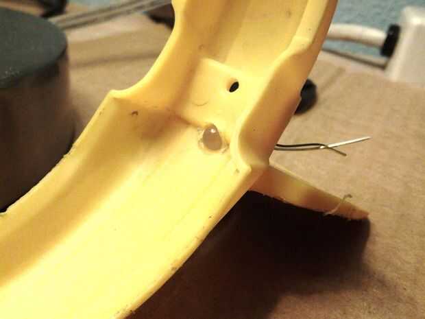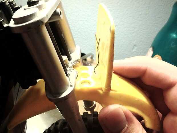 Aquí decidí montar un LED blanco bajo el protector frontal de suciedad. Esto permitirá que la luz apunte hacia abajo hacia el suelo mientras ilumina también la rueda delantera.