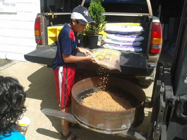 ayer me decidí a algunas plantas para que yo puedo crecer mis propias hierbas, lechugas y fresas.Mi papá me dio un bote grande de plástico que era una bota de plástico grande y usó una sierra para cortar por la mitad y utilizarlo como una maceta gran