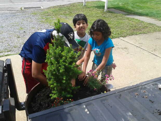 ayer me decidí a algunas plantas para que yo puedo crecer mis propias hierbas, lechugas y fresas.Mi papá me dio un bote grande de plástico que era una bota de plástico grande y usó una sierra para cortar por la mitad y utilizarlo como una maceta gran