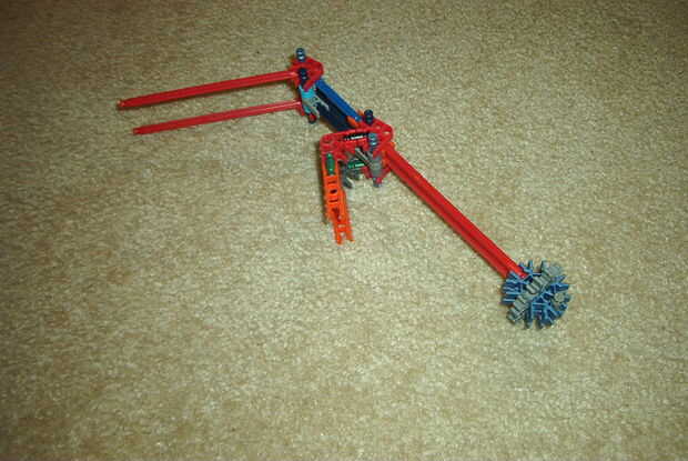 Este elemento ha aparecido en muchas máquinas de la bola a través de este sitio. Consiste en un brazo que baja una bola mientras se mantiene paralelo al suelo. Construir el elemento de apoyo de dispositivo primero, luego construir el brazo sí mismo.