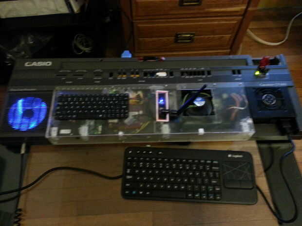 Lo sentimos, no mucha información aquí, no realmente tomar muchas fotos en progreso. Las medidas eran esenciales. Así como de una dremel! Reducción de puertos en el teclado de plástico me tomó un tiempo, uso de fuerza suave con los discos de corte, o snap y arrojar piezas!