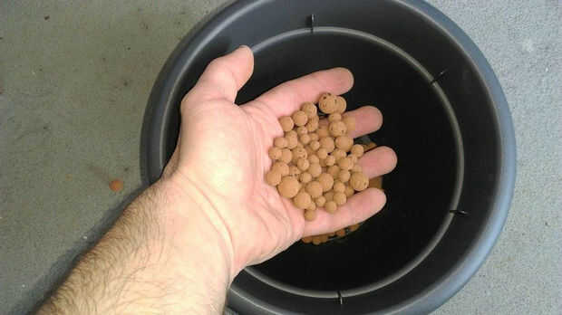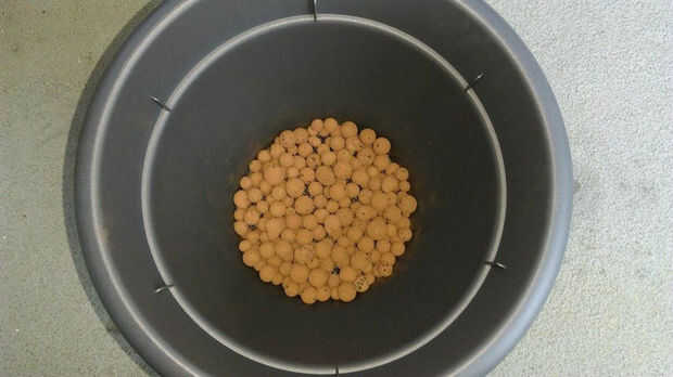 Esto es bastante sencillo. Ahora es seguro para que usted sólo tiene que añadir las bolitas de arcilla en el pote de la planta ahora que se fija la malla en la parte inferior de la maceta.