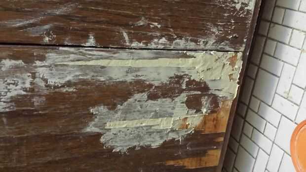 Empezar llenando la falta chapa con masilla de madera. Tardará un par de capas, lijar entre capas. No te preocupes acerca de cómo perfecto en este punto, introduce en los huecos grandes.