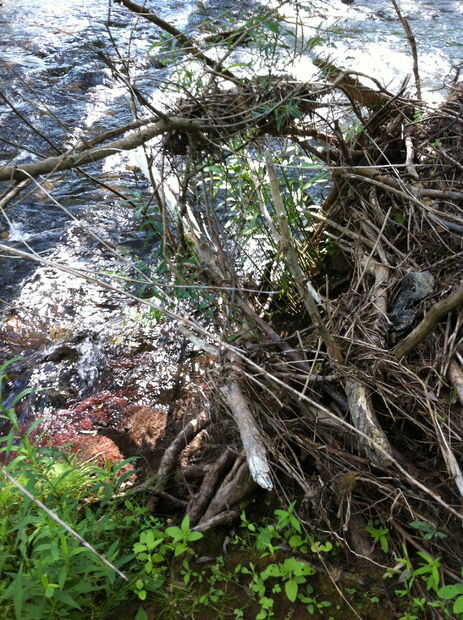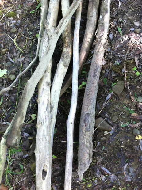 fui a la quebrada a buscar madera para los pies y los postes de la pierna.