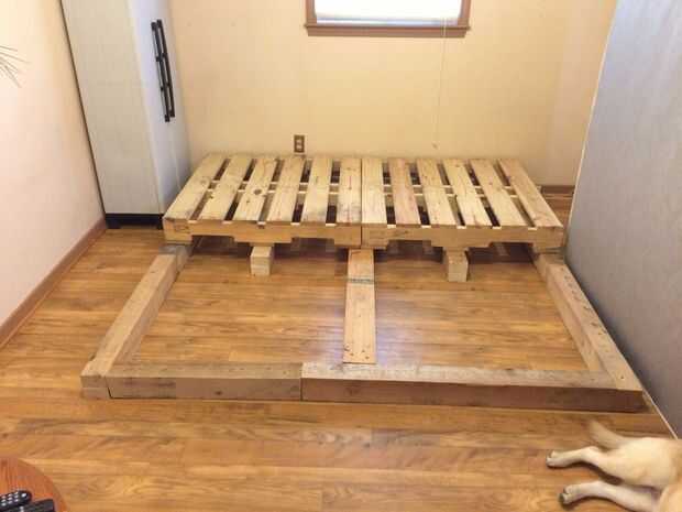 este fue un proyecto fácil que sólo tomó un par de horas de principio a fin. No incluyendo la mancha y el poliuretano, que tenía en mano, costo total fue de $40,00.Paso 1: materiales-Paletas (x 2) - primeros de la espuma (varía según el tamaño de la