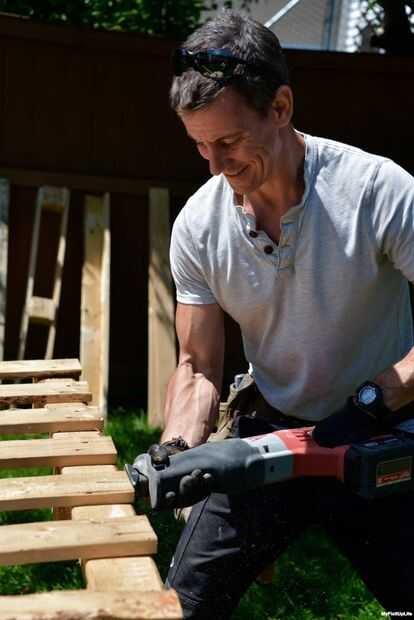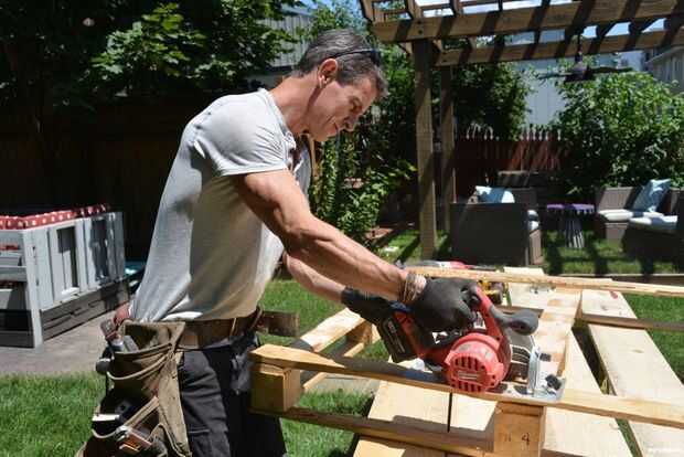 Herramientas de elección — intercambio Sierra para cortar clavos y una sierra circular (inalámbrico es ideal incluso-er) para corte transversal de piezas de la plataforma.