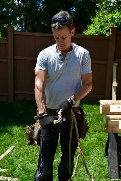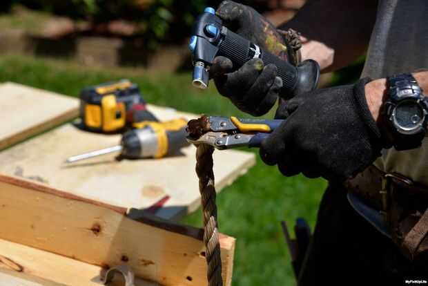 El gran desafío con la cuerda era evitar que se desgaste en los extremos y desenredar. Compré línea de polietileno de 1 pulgada de un centro y los extremos se fundió con mi soplete Bernzomatic. Habría tomado seis años hacer esto con fósforos o un encendedor.
