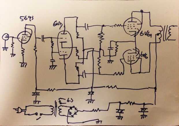 El reconstruido circuito es como por debajo. Es muy simple y ordinario triodo conexión push-pull. Me encanta los tubos del metal, y que el tiempo allí está un tubo metálico rojo 5693 y 6N7 en mi stock. Decidí hacer todos los amplificadores de tubo de metal. En eBay he comprado un par de 6V6 tubo de metal.