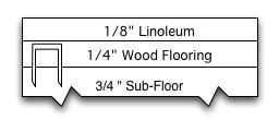 El linóleo debe ser una hoja si es posible. Si estás haciendo una gran área que requiere más de una hoja de linóleo, usted necesitará usar alguna herramienta para fusionar la costura. (Esto es lado mi área de especialización). El piso de madera puede establecerse en secciones. El piso se presenta generalmente en hojas llenas. Linóleo es conectado al piso de madera con un pegamento y el piso de madera se une al contrapiso con grapas de 1". Las grapas se colocan cada 2" y mucho más de cerca alrededor de la costura de cada segmento de suelo de madera.