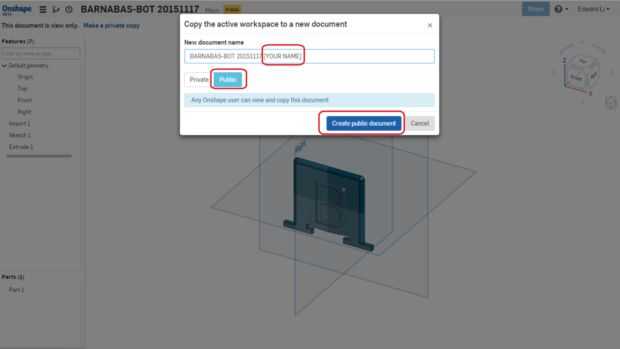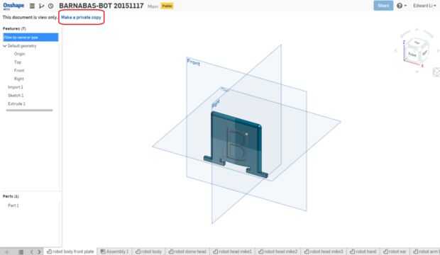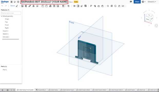 3. Abra el archivo "placa frontal del cuerpo del robot" en OnShape.