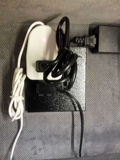 Luego enrollado y atado todos los cables para la fuente de alimentación de alambre y detector de movimiento. Había conectado la fuente de alimentación en el enchufe del detector de movimiento y enchufa en el tomacorriente en la parte posterior de la caja fuerte. Ligeramente, cubre el conector USB y de red en la caja fuerte pero no lo suficiente para hacerlos inutilizables.