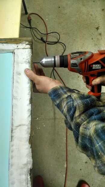Pretaladran los agujeros para asegurarse de que nuestro marco especial, antiguo y viejo vidrio no agrieten o se rompan.