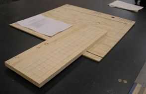 Mark-up una de las mitades para taladrar agujeros de corcho. Omitir un orificio en el extremo para asegurar la orientación. Debe haber tres filas de agujeros (17, 17 y 16), los centros separaron por 1" lateralmente y longitudinalmente.